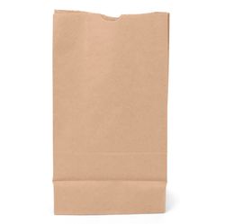 Durable brown kraft paper S.O.S. Bag features a side gusset and a serrated cut top. Brown kraft paper is made from 100% recycled paper with a minimum of 95% post-consumer content. S.O.S. Bags are perfect for holding retail, pharmacy, and newsstand purchases. USA made.